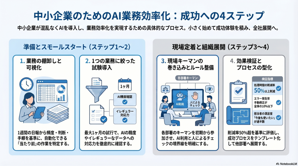 中小企業向けAI業務効率化の導入手順4ステップ