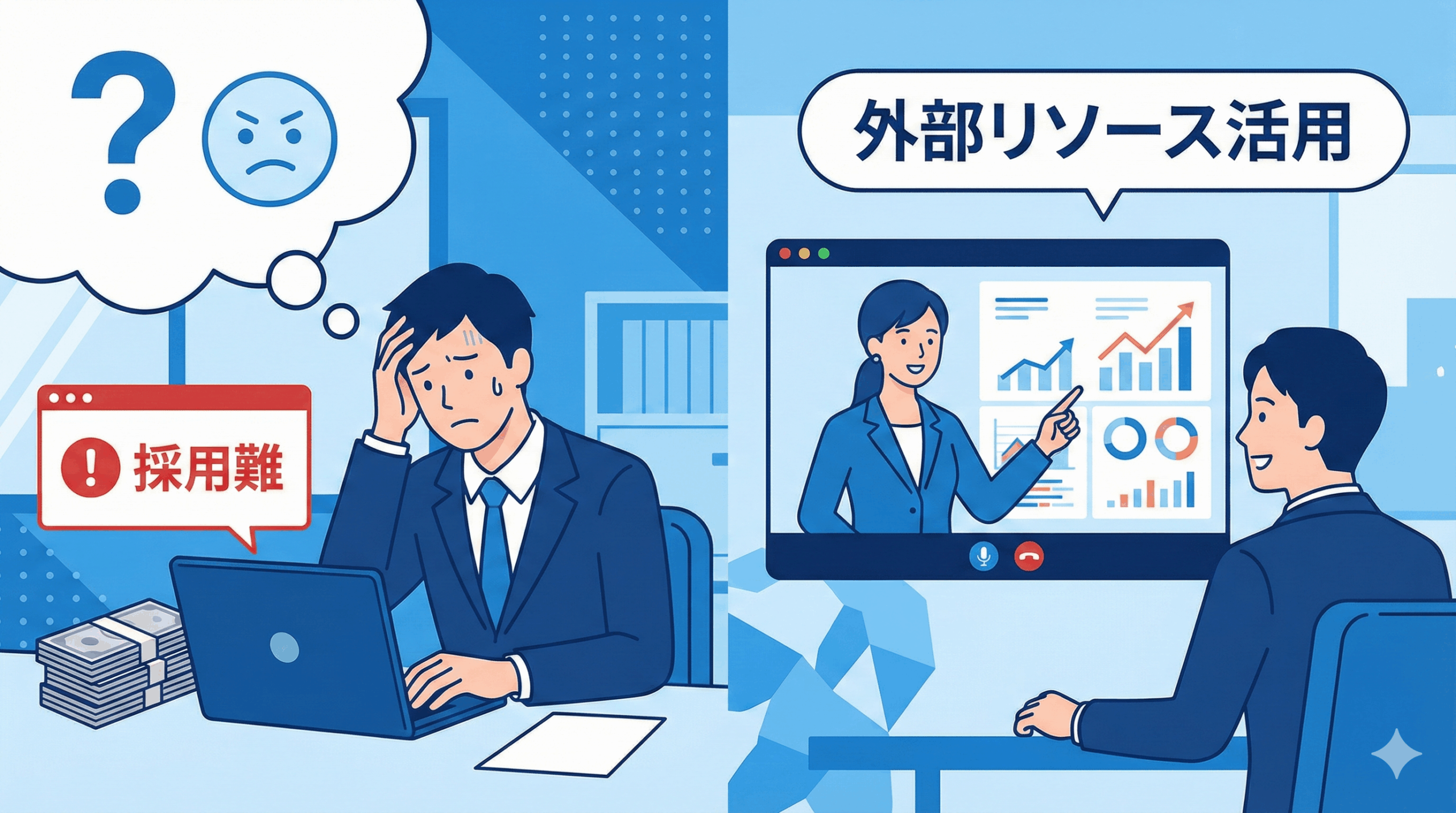 貴社の課題(採用難、実行リソース不足)は、従来の「コンサルティング」や「単発のフリーランス依頼」では解決できません。