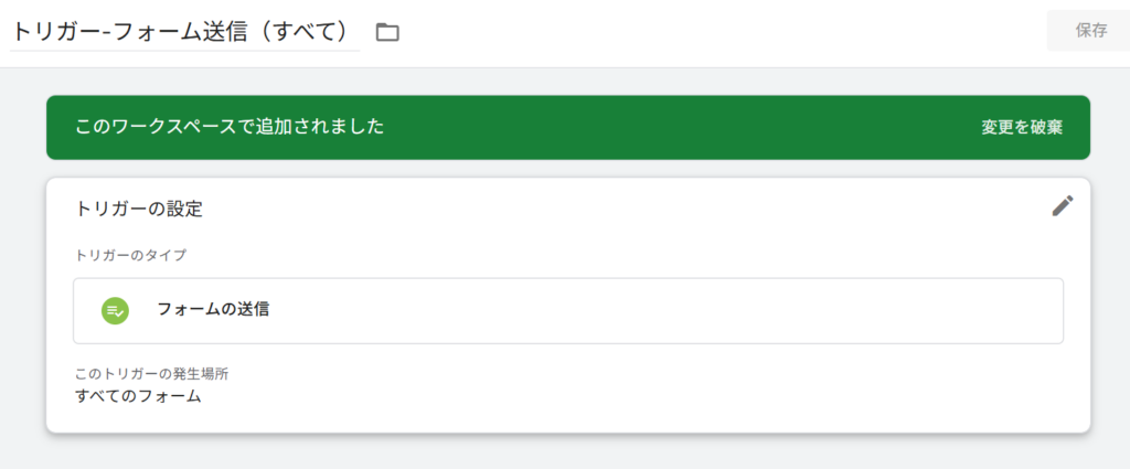 10. [保存] をクリックします。これで、特定のフォーム送信だけを検知するトリガーが完成しました。