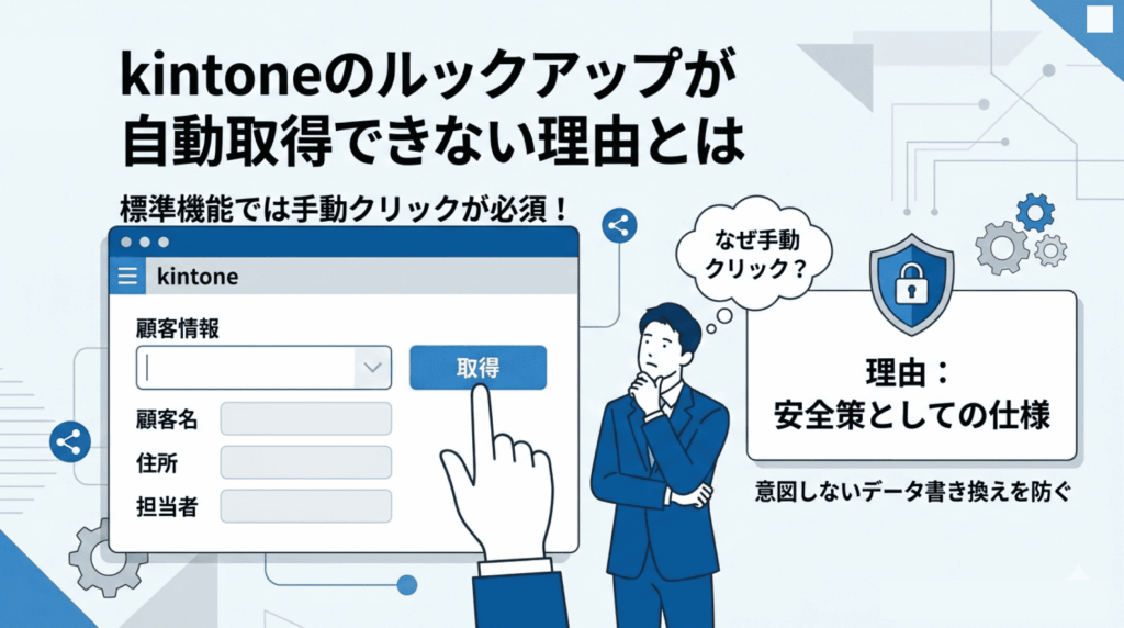 kintoneを導入して間もない現場のマネージャーから最も多く寄せられる不満の一つが、「なぜルックアップは毎回ボタンを押さなければならないのか」という点です。